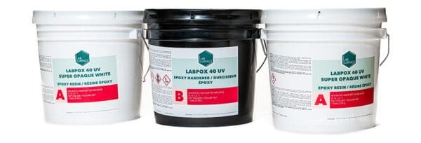LABPOX® 40 UV SUPER OPAQUE WHITE is a 100% solids, two-component epoxy system (2A:1B) formulated as a zero-VOC specialty coating for concrete floors requiring enhanced UV resistance. Supplied in a high-opacity white finish, the product delivers excellent resistance to UV irradiation, ensuring long-term color stability and making it well suited for residential and commercial applications. It is ideal for achieving bright white floor finishes or for use as a base coat in metallic epoxy flooring systems.